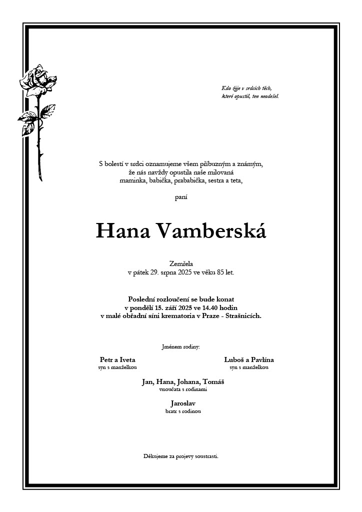Navždy nás opustila až do roku 1975 členka klubu Hanka Vamberská, kdy se rodina přestěhovala na jižní Moravu do Veselí nad Moravou a tam dále působila v oddíle vodních sportů.